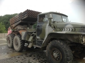 Walking towards the National Museum of the History of the Great Patriotic War at the weekend of the 12th/13th July 2014, whilst listening to patriotic WW2 songs playing from speakers scattered around the area, it became obvious that it was a poignant place chosen by the Ukrainian presidential administration to display the war technology that was captured by Ukrainian troops from Russian separatist forces in the cities of Sloviansk and Kramatorsk a week earlier.
